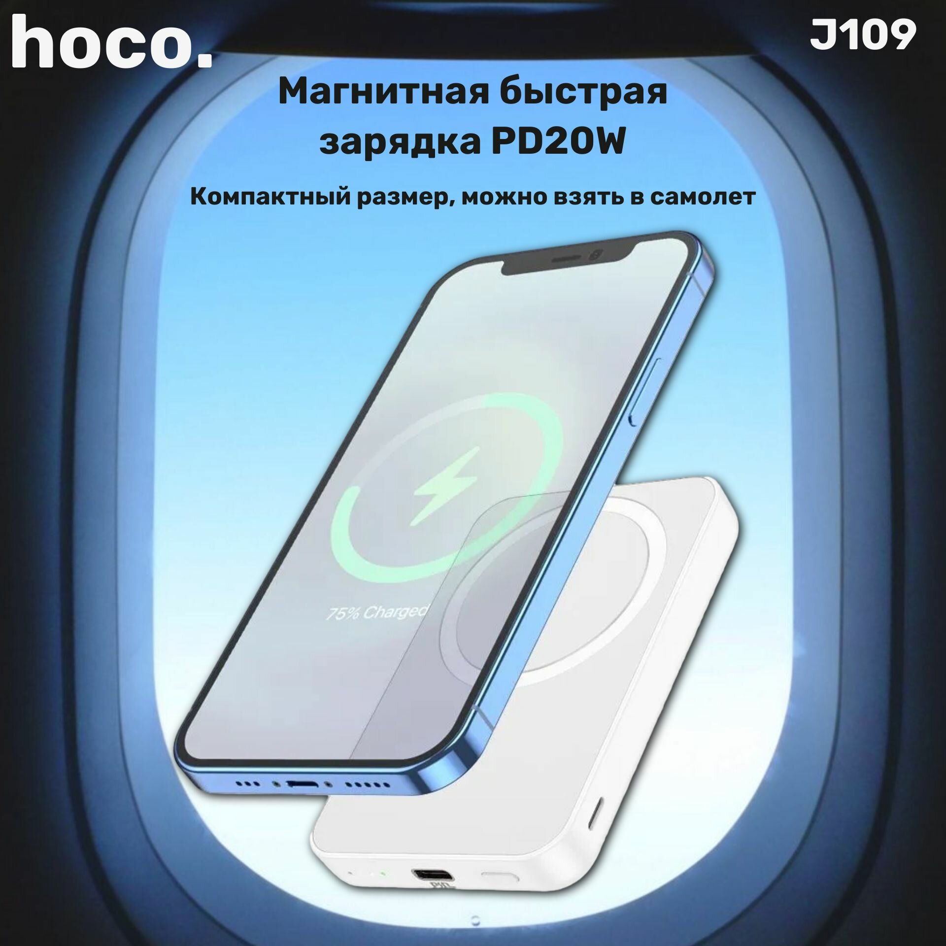 Внешний аккумулятор повербанк Hoco J109 5000 mAh MagSafe с быстрой зарядкой fast charge (PD/QC/FCP/AFC), белый