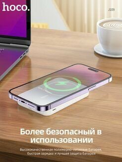 Powerbank с беспроводной зарядкой MagSefe Hoco J109. 5000mAh 1USB-C 20W белый