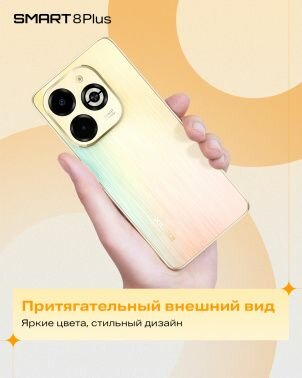 Смартфон Infinix Smart 8 Plus 4/64 ГБ Global, Dual nano SIM, блестящее золото