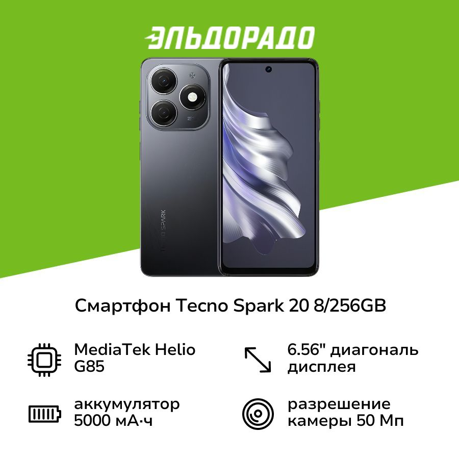 Смартфон TECNO Spark 20 8/256 ГБ RU, Dual nano SIM, gravity black