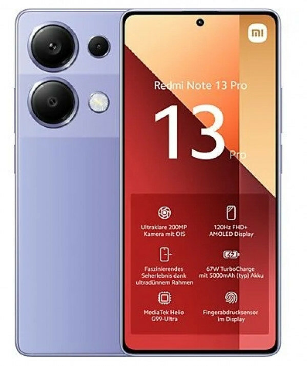 Смартфон Xiaomi Redmi Note 13 Pro RU 8+128 N6/Lavender Purple 6.67 FHD+/AMOLED/120 Hz/MTK G99 Ultra/And13/200+8+2/16MP/NFC/5000mAh