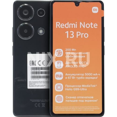 Смартфон Xiaomi Redmi Note 13 Pro RU 12+512 N6/Midnight Black 6.67 FHD+/AMOLED/120 Hz/MTK G99 Ultra/And13/200+8+2/16MP/NFC/5000mAh