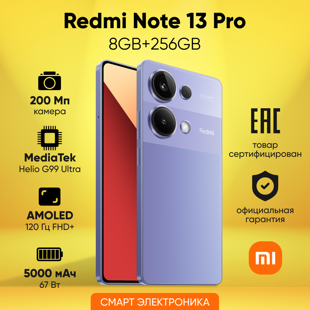 Смартфон Xiaomi Redmi Note 13 Pro RU 8+128 N6/Lavender Purple 6.67 FHD+/AMOLED/120 Hz/MTK G99 Ultra/And13/200+8+2/16MP/NFC/5000mAh