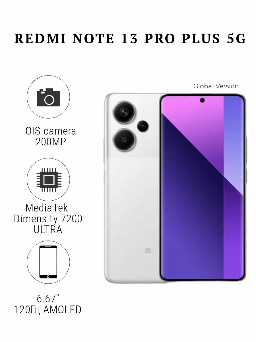 Смартфон Xiaomi Redmi Note 13 Pro Plus 5G 8/256Gb White (Global Version)