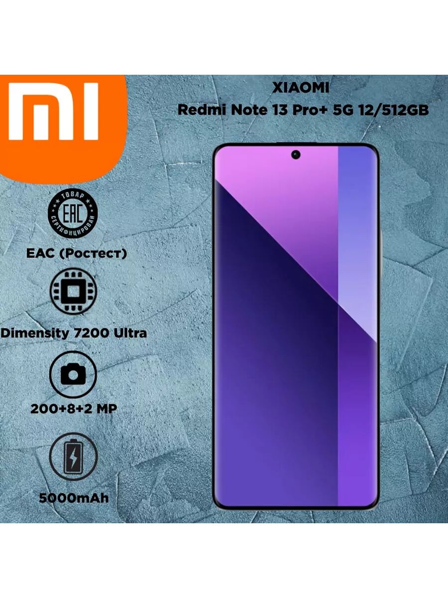 Xiaomi Смартфон Xiaomi Redmi Note 13 Pro+ 5G, Глобальное ПЗУ Поддержка русского языка NFC + Google Play Global 12/512 ГБ, фиолетовый