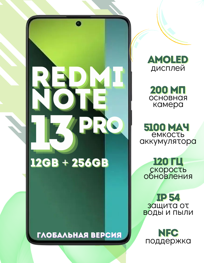 Купить Redmi Note 13 Pro, 12/256 Gb, глобальная версия с поддержкой русского языка, Google Play, черный