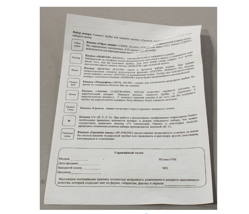 | Особенности | повторный набор номера, регулятор громкости звонка, удержание линии |