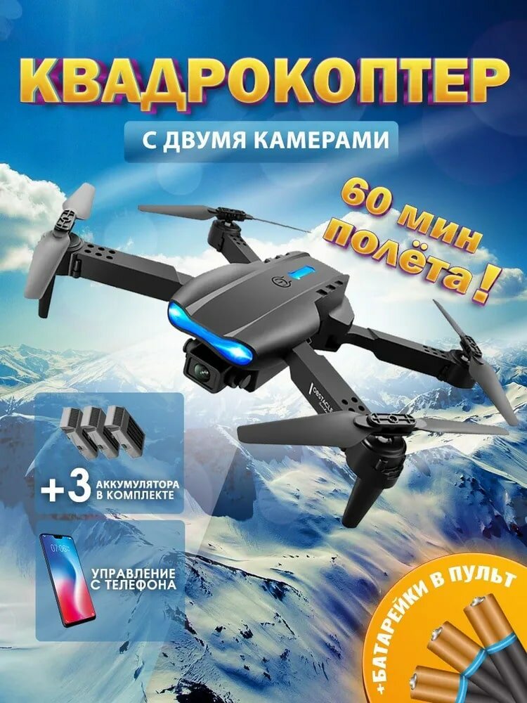 Квадрокоптер, Квадрокоптер с камерой, Квадрокоптер E88pro с двумя камерами 3 АКБ в комплекте, разрешение 1080p. интересное:
