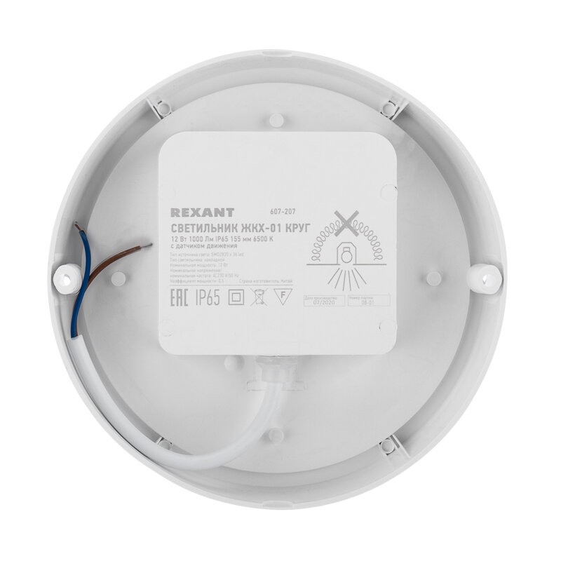 Купить Светильник ЖКХ LED пылевлагозащищенный круг IP65 12Вт 1000Лм 6500K с микроволновым датчиком движения REXANT 1 шт арт. 607-207