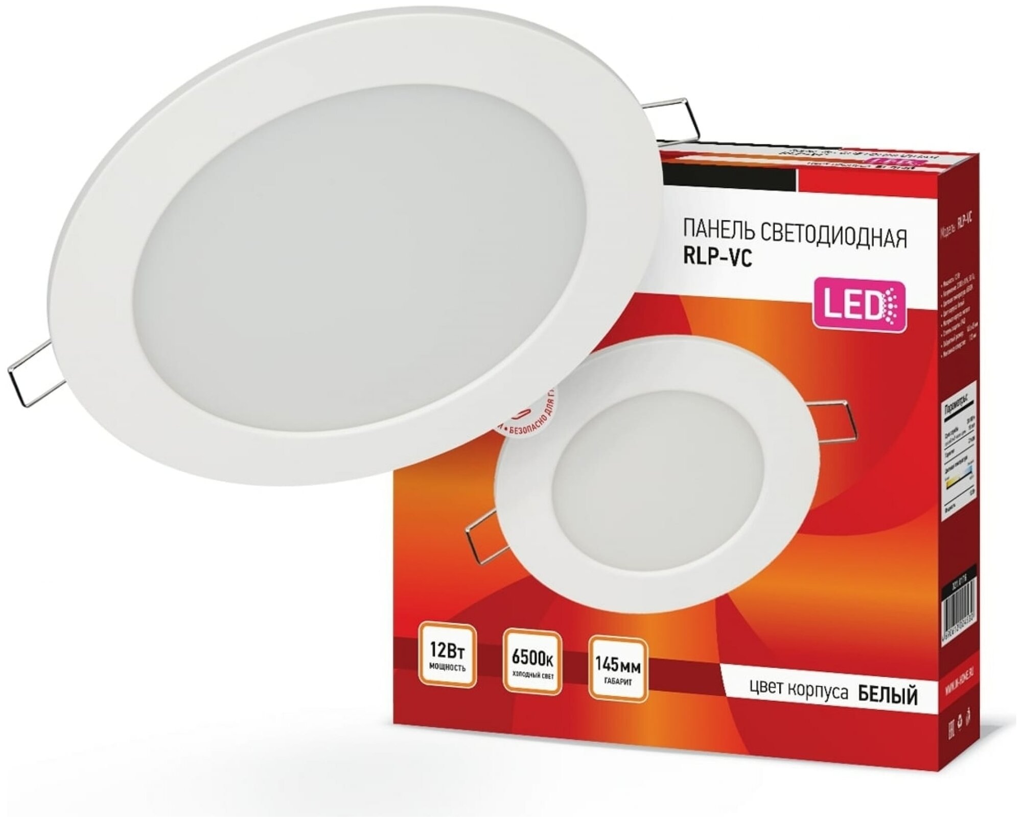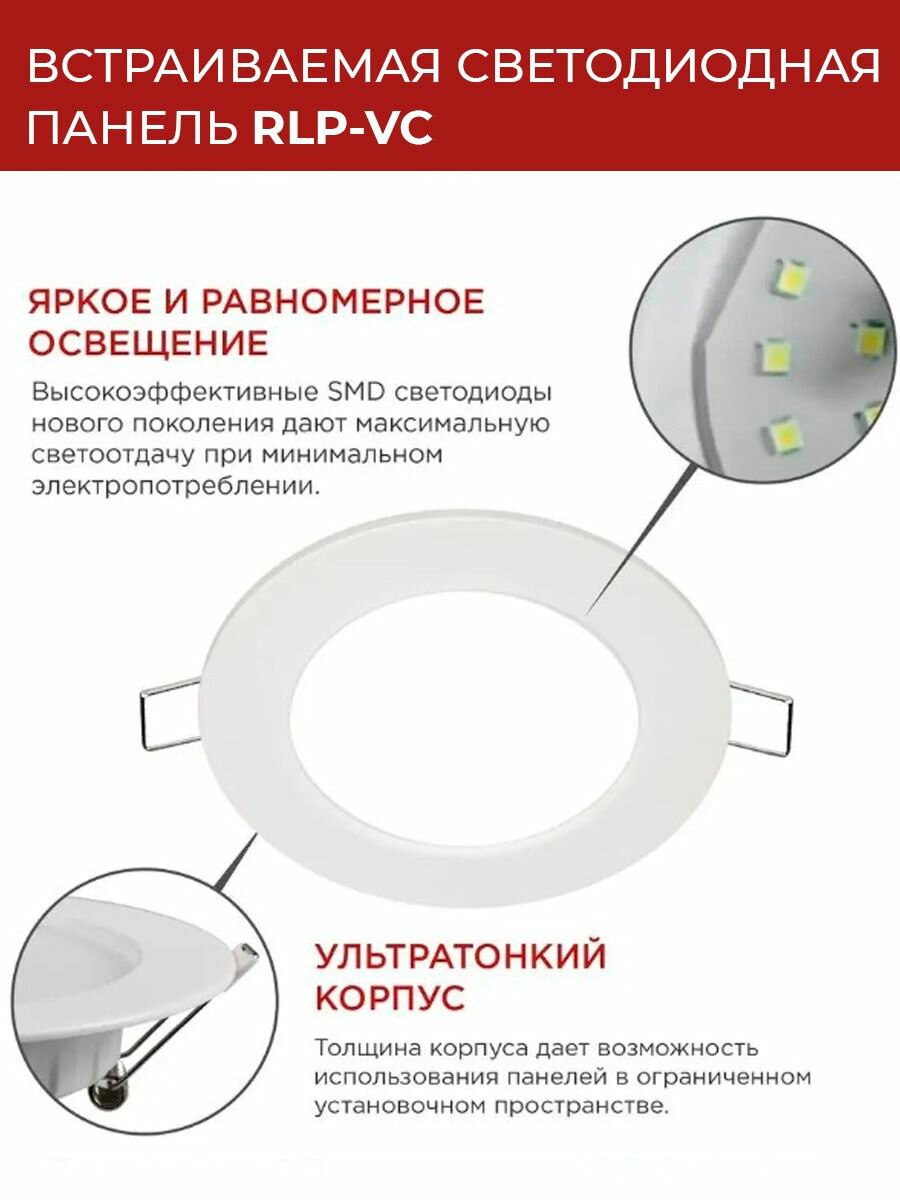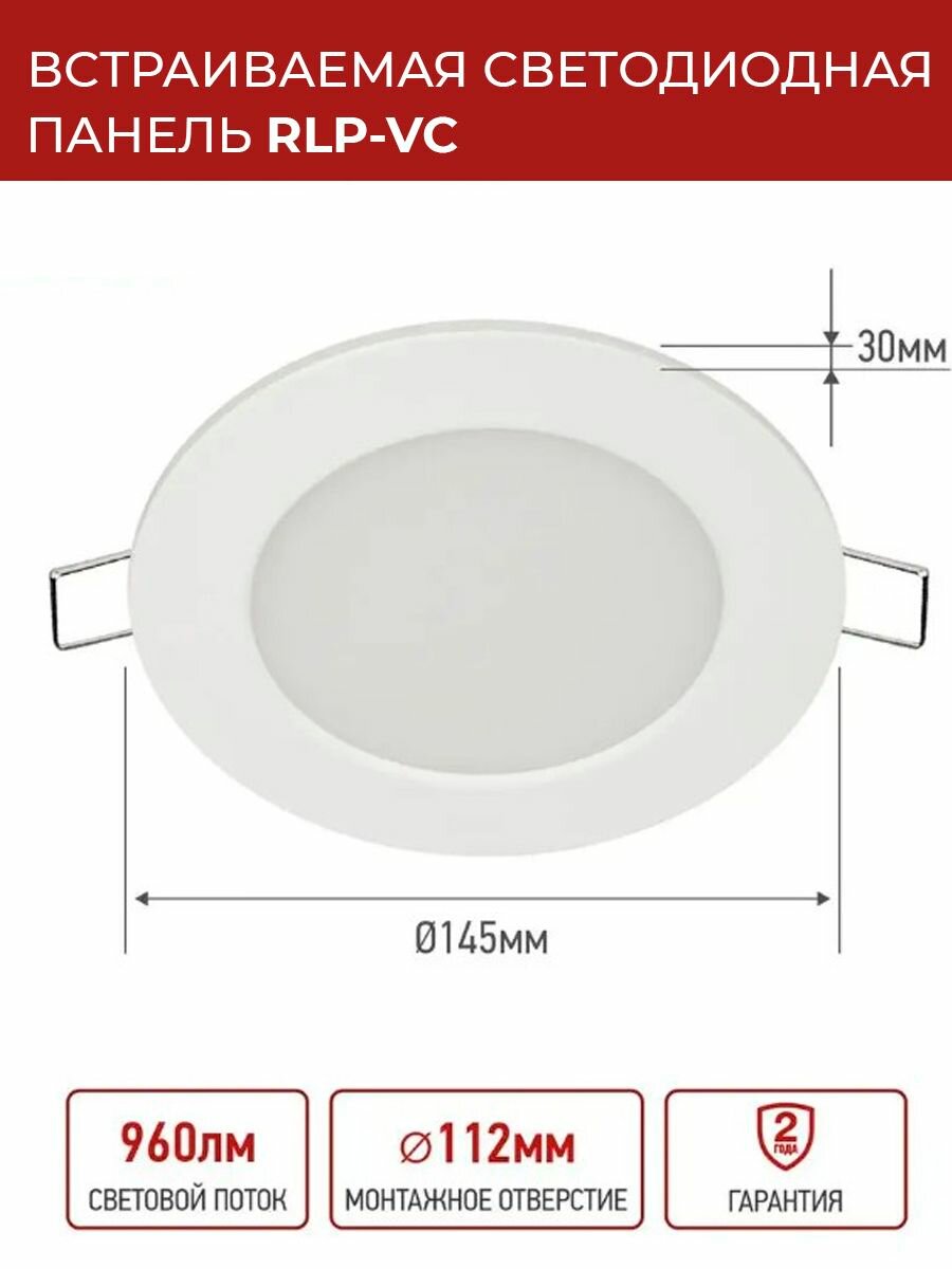 Купить Светильник светодиодный RLP-VC 12Вт 6500К IP40 960лм 230В 145мм кругл. встраив. панель бел. IN HOME 4690612024530