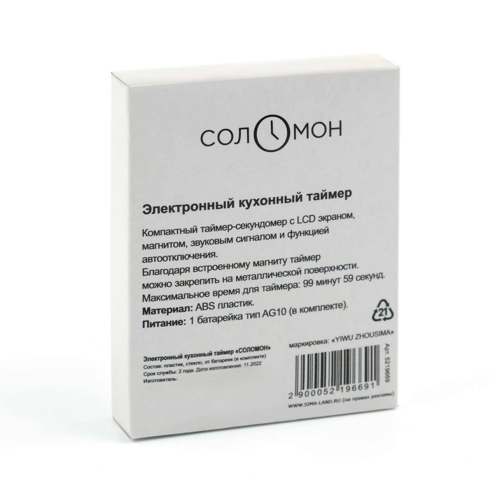 Электронный кухонный таймер "Соломон" на магните, 5.3 х 7 см 5219669 интересное:
