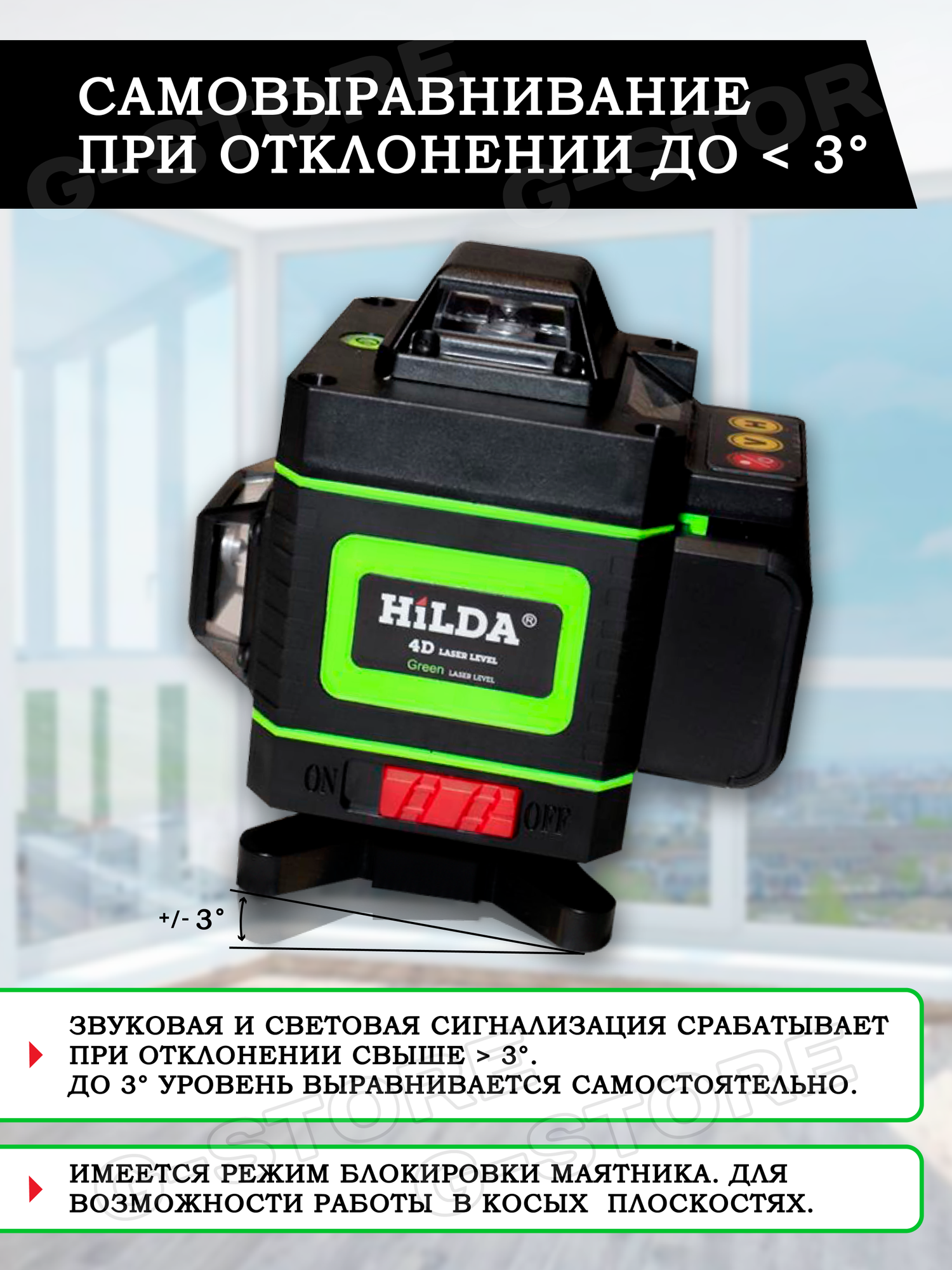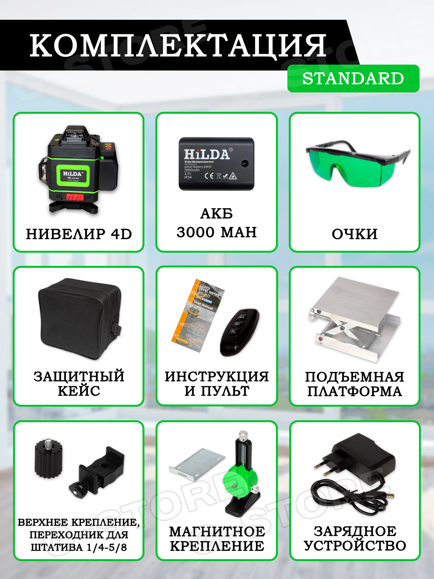 Лазерный уровень Нивелир HiLDA 4D /16 line 2 акб