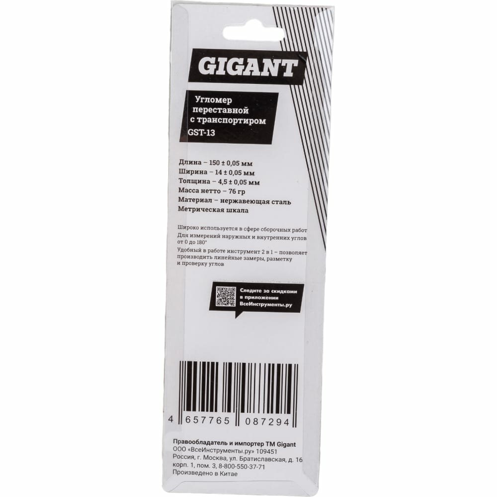 Gigant Угломер переставной с транспортиром 150 мм GST-13 интересное: