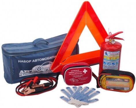 Набор автомобилиста Автостоп H-3 (огнетушитель 2л, знак аварийной остановки, трос 6т, аптечка, перчатки, провода прикуривания) интересное: