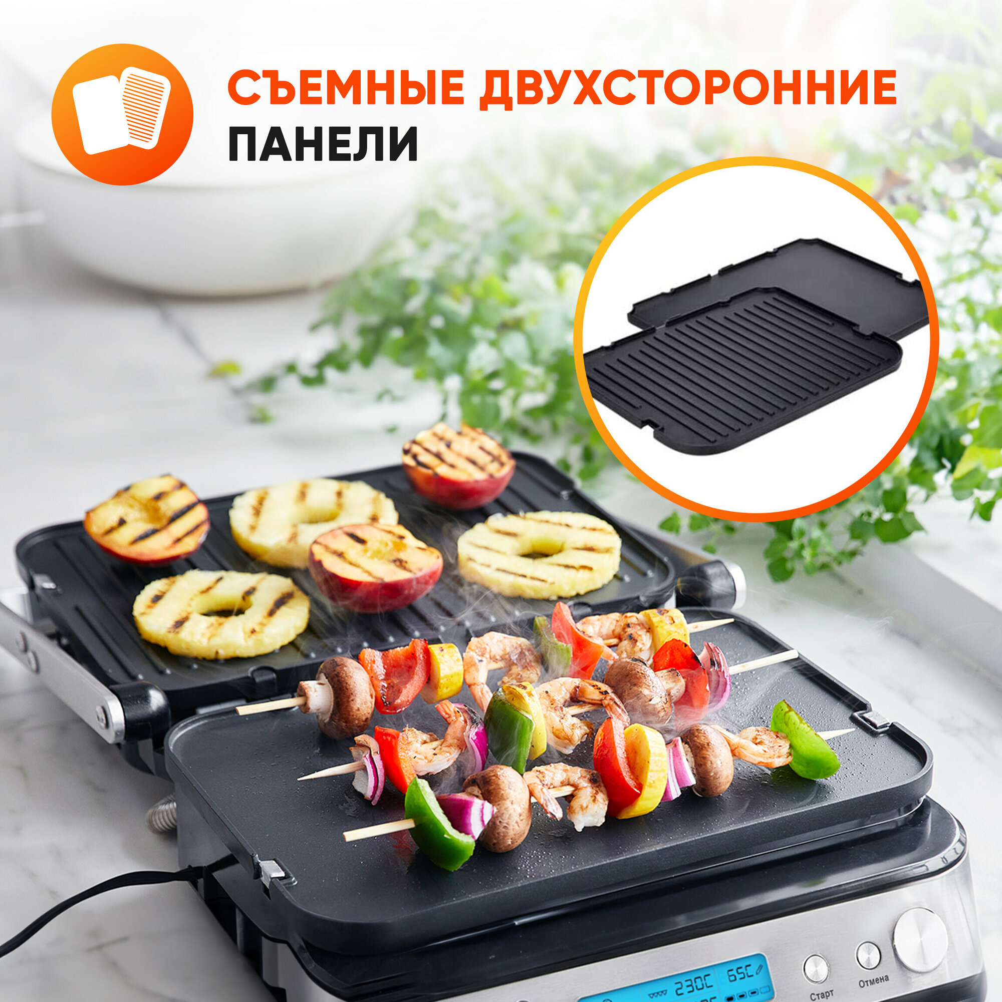 Умный электрогриль с термометром для мяса, 5 степеней прожарки стейка, открытие на 180 градусов, электрический гриль с двусторонними панелями Oberhof Grillkonig T-37 интересное: