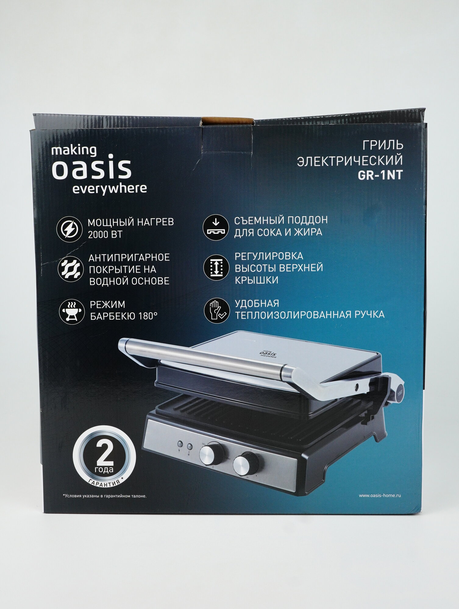 Гриль Oasis GR-1NT 2000Вт; серебристый металлик, механическое управление. интересное: