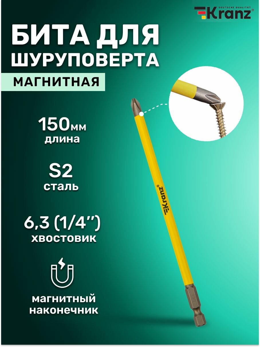 Бита Для Шуруповерта Ph2х150 Мм Kranz Kranz Kr-92-0411-1 Kranz арт. KR-92-0411-1