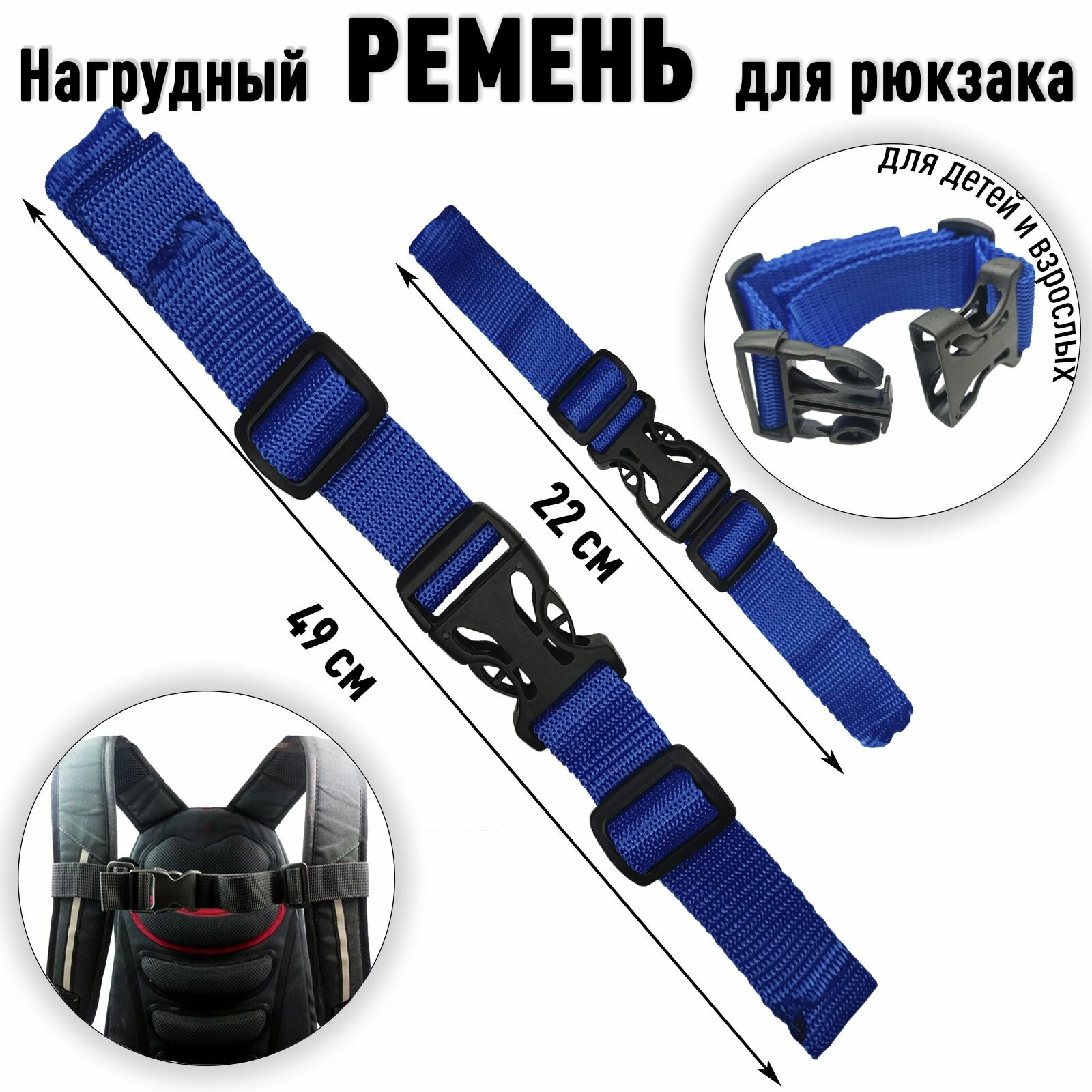 Нагрудный ремень для рюкзака на лямки с карабином / Грудная стяжка синий 22-49см интересное: