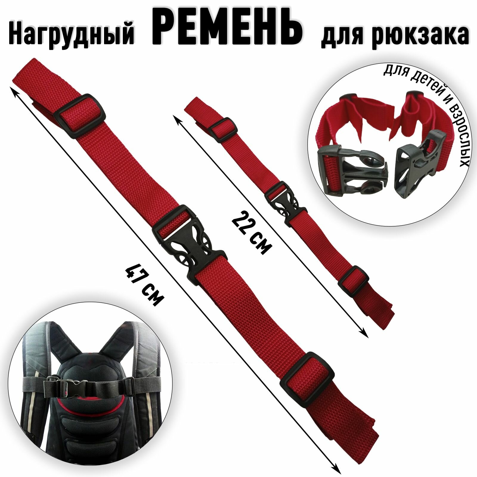 Нагрудный ремень для рюкзака на лямки с карабином / Грудная стяжка красный 22-47см интересное: