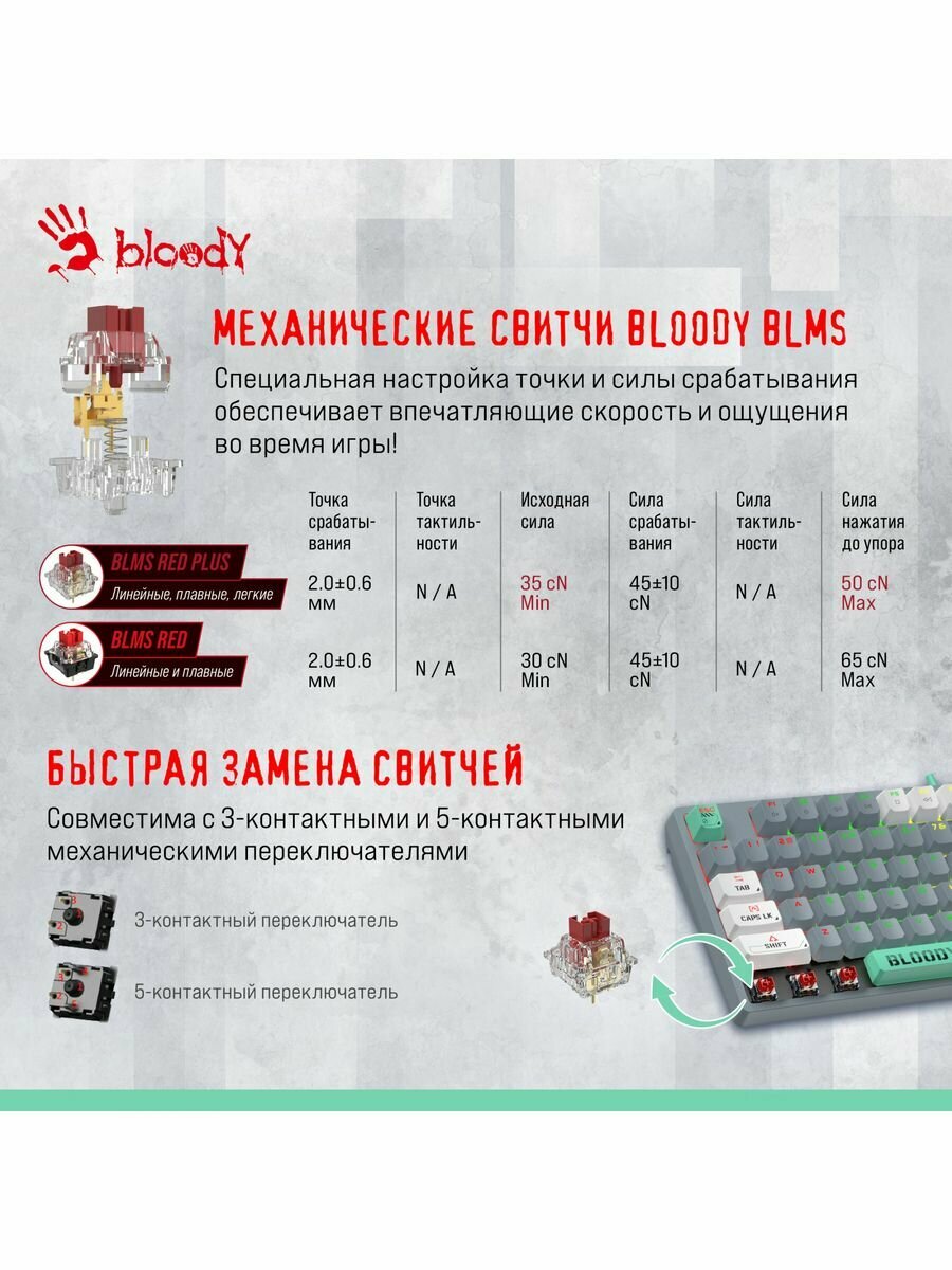 Клавиатура A4tech Bloody S87 Energy USB Grey интересное: