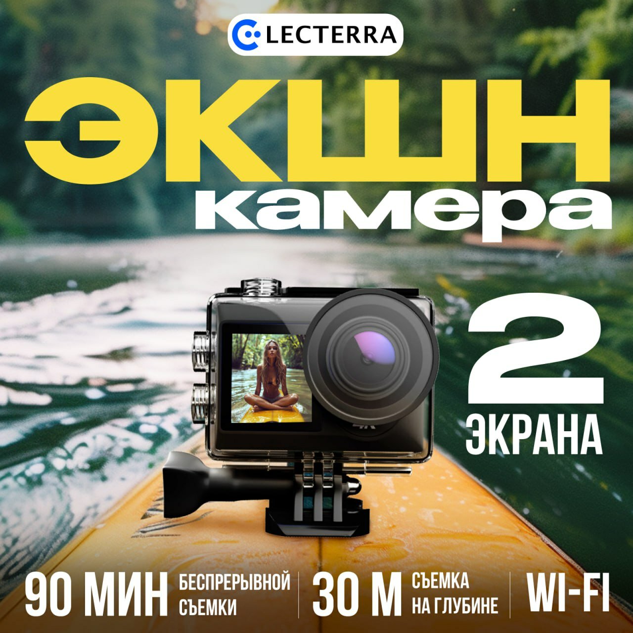 Экшн камера Electerra 4К UHD 30 fps. Подводная съемка. Видеокамера для активного отдыха. Черный