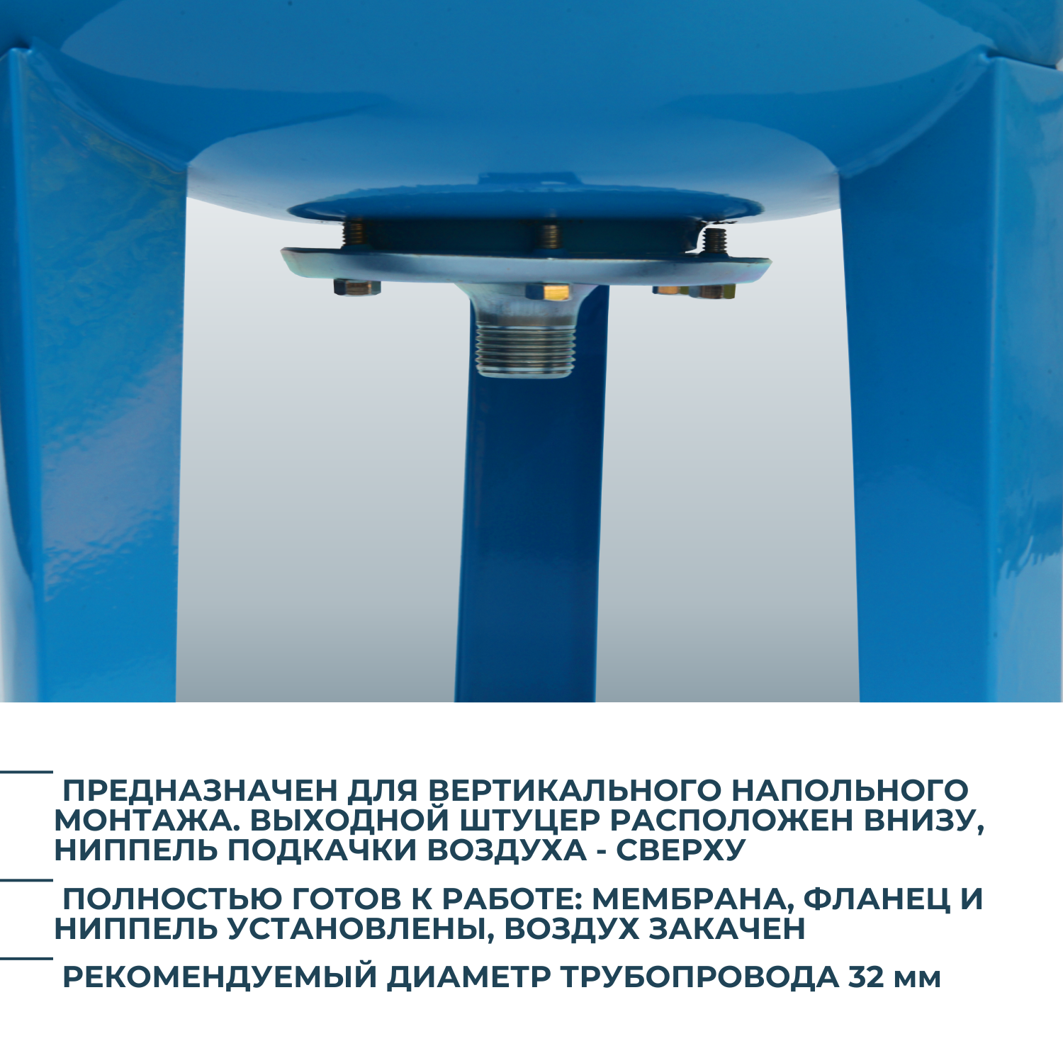 Гидроаккумулятор вертикальный 50 л. ETERNA (цвет синий) Нижнее