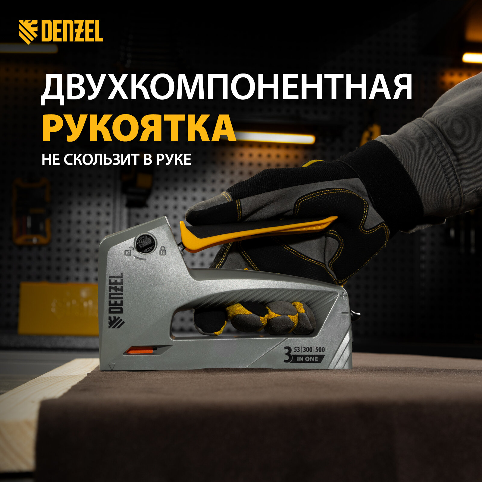 Степлер мебельный Denzel пластиковый корпус, тип 53, 6-14 мм, тип 300, 15 мм, тип 500, 15 мм 40213 интересное: