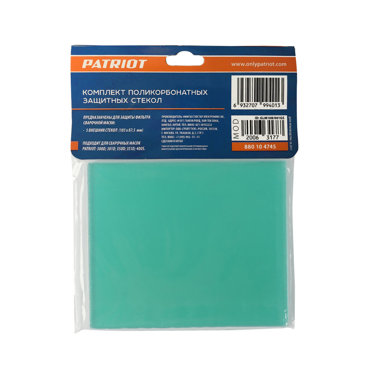 Стекло защитное 105 х 87.5 мм (5 шт., внешнее) PATRIOT 880104745