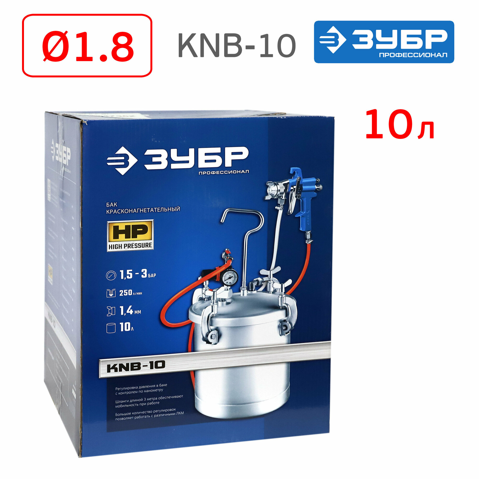 Купить Краскопульт ЗУБР KNB-10 (1,8мм; бак 10л) с нагнетательным баком профессионал