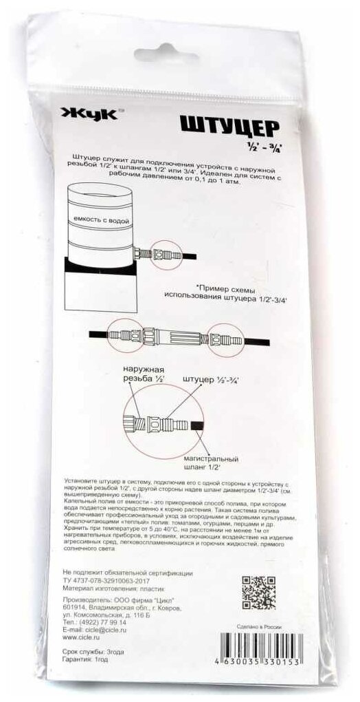 Набор штуцеров ЖУК для капельного полива 1/2-3/4 330153-00, 2шт, емкость