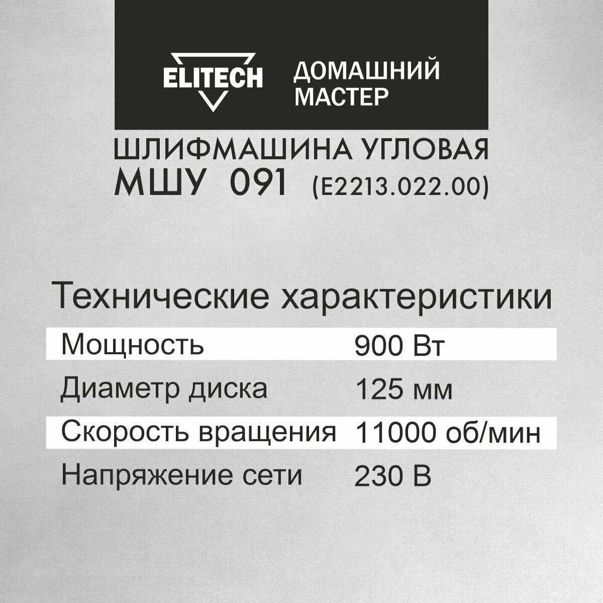 Машина шлифовальная угловая электрическая ELITECH ДМ МШУ 091 (E2213.022.00)