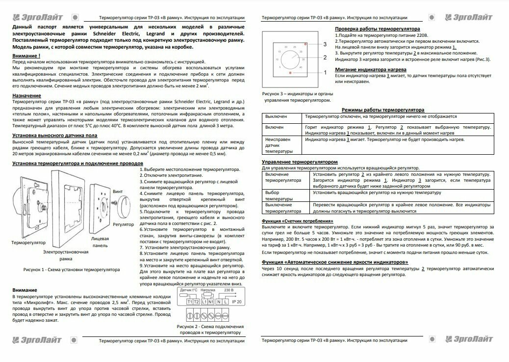 | Дополнительная информация | автоматическое снижение яркости, подсчет расхода электроэнергии, сигнализация обрыва датчика температуры |