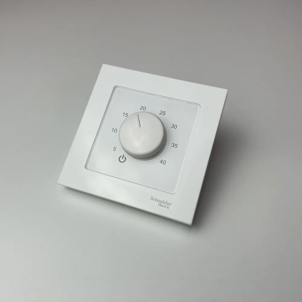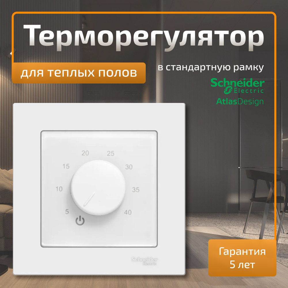 Терморегулятор ЭргоЛайт ТР-03 Атлас белый, с выносным датчиком, встраиваемый, для рамок Schneider Electric Atlas Design