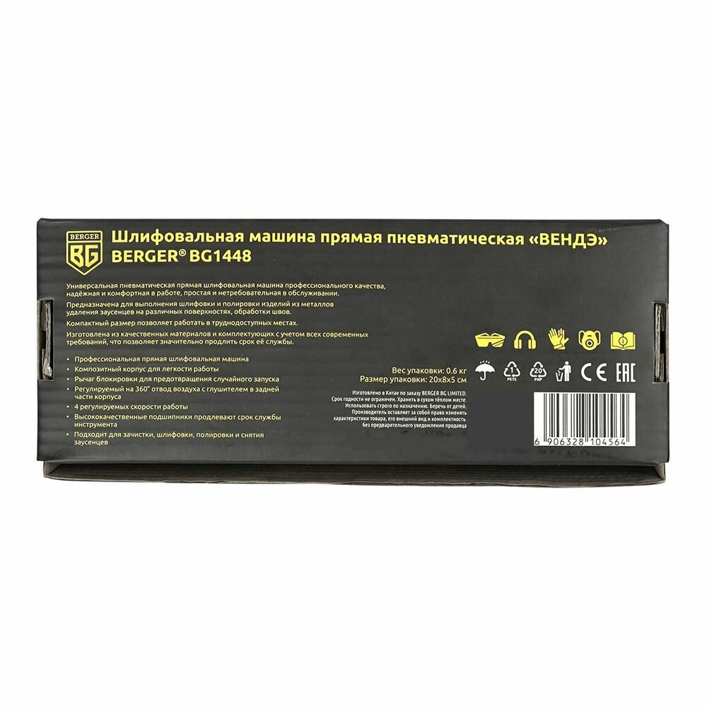 Шлифовальная машина прямая пневматическая вендэ BERGER BG1448 интересное: