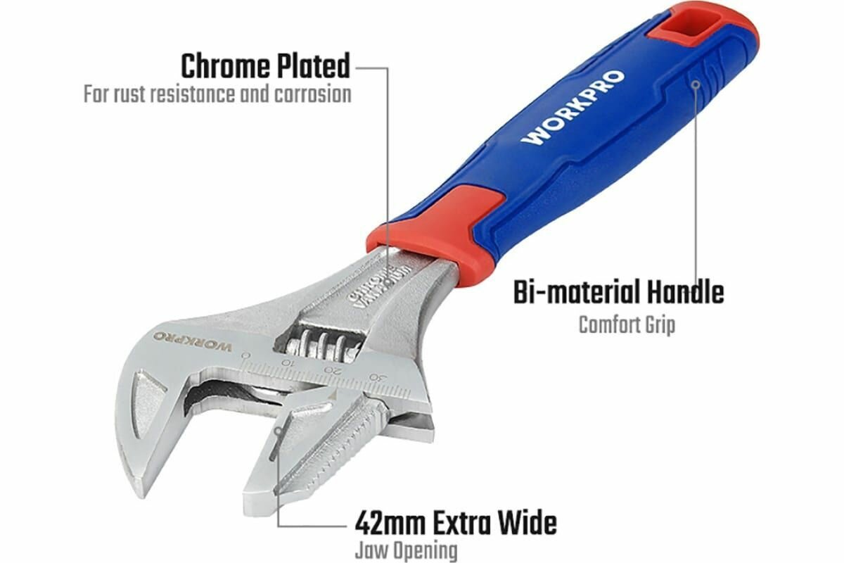 Ниже Вы можете прочитать отзывы на Ключ разводной workpro 200мм 2в1, ознакомится с подробными характеристиками, посмотреть интересные обзоры и фотографии на Ключ разводной workpro 200мм 2в1.