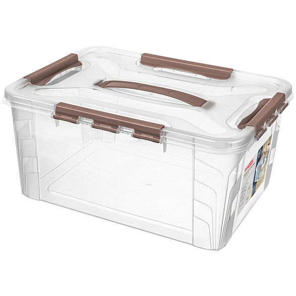 Контейнер универсальный с замками и вставкой- органгайзером «GRAND BOX», коричневый, 39*29*18см, 15,3л
