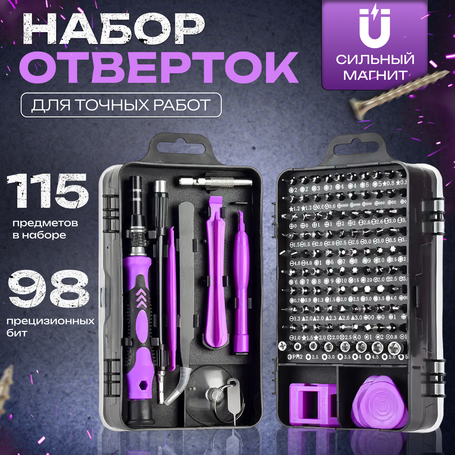 Набор отверток и бит 115 в 1, многофункциональный инструмент для точных работ, фиолетовый цвет