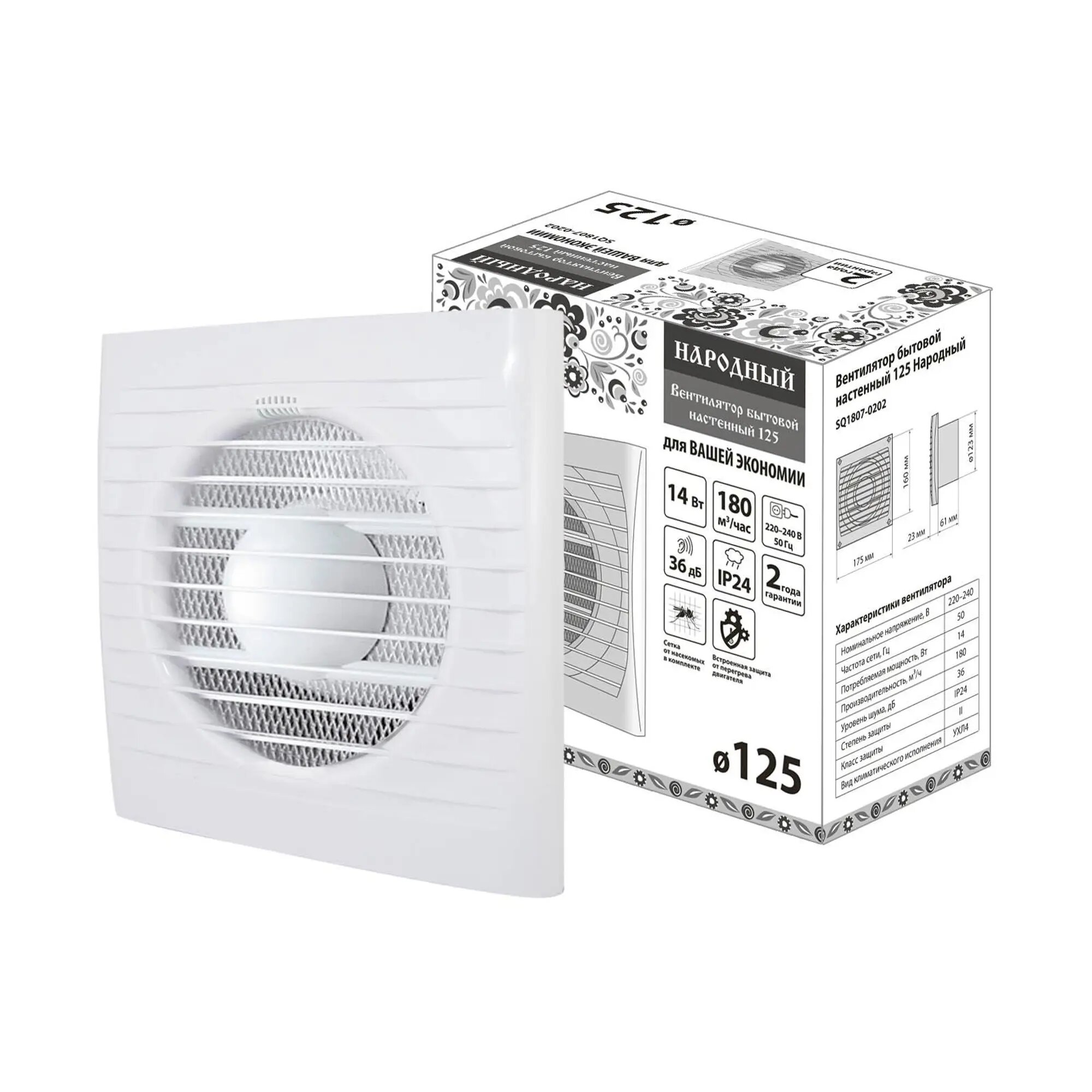 Вентилятор бытовой настенный 125, Народный SQ1807-0202 (1 шт.) интересное: