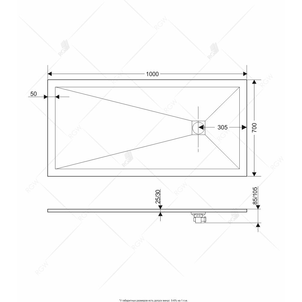 Душевой поддон RGW ST-0107G 70х100х2,5 16152710-02