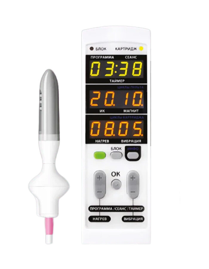 | Показания к применению | Урологические и урогинекологические заболевания: • Ургентное недержание мочи. • Стрессовое недержание мочи. • Оргастическая дисфункция. • Лечение диспареунии. • Слабость мышц тазового дна и выпадение уретры, влагалища, матки в том числе в период менопаузы или после травм. • Хронический цистит. Гинекологические заболевания: • Бактериальный вагиноз, хронически вагинит, цервицит. • Боли в области придатков, матки, промежности, мочевого пузыря, не связанные с онкологией и острым воспалением. • ВЗОМТ (аднексит, сальпингоофорит). • Эндометрит, в том числе после родов, после абортов. • Спаечные процессы в малом тазу. • Скрытая инфекция органов малого таза. • Менопауза и инволютивные процессы в малом тазу. • Женское бесплодие воспалительного или неясного генеза. • Нарушения овогенеза. |