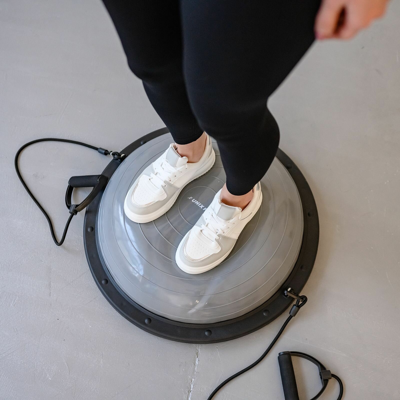 Балансировочная полусфера UNIX Fit 46 Bosu с эспандерами в наборе, cтеп-платформа, до 120 кг. UNIXFIT