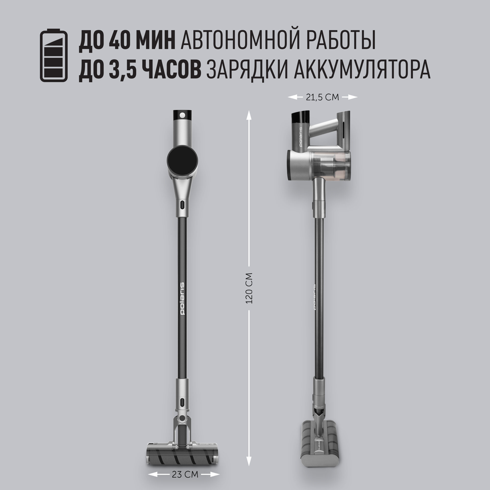 Беспроводной пылесос Polaris PVCS 4090 "Space Sense", мощность 220Вт, сухой, аккумуляторный, серый