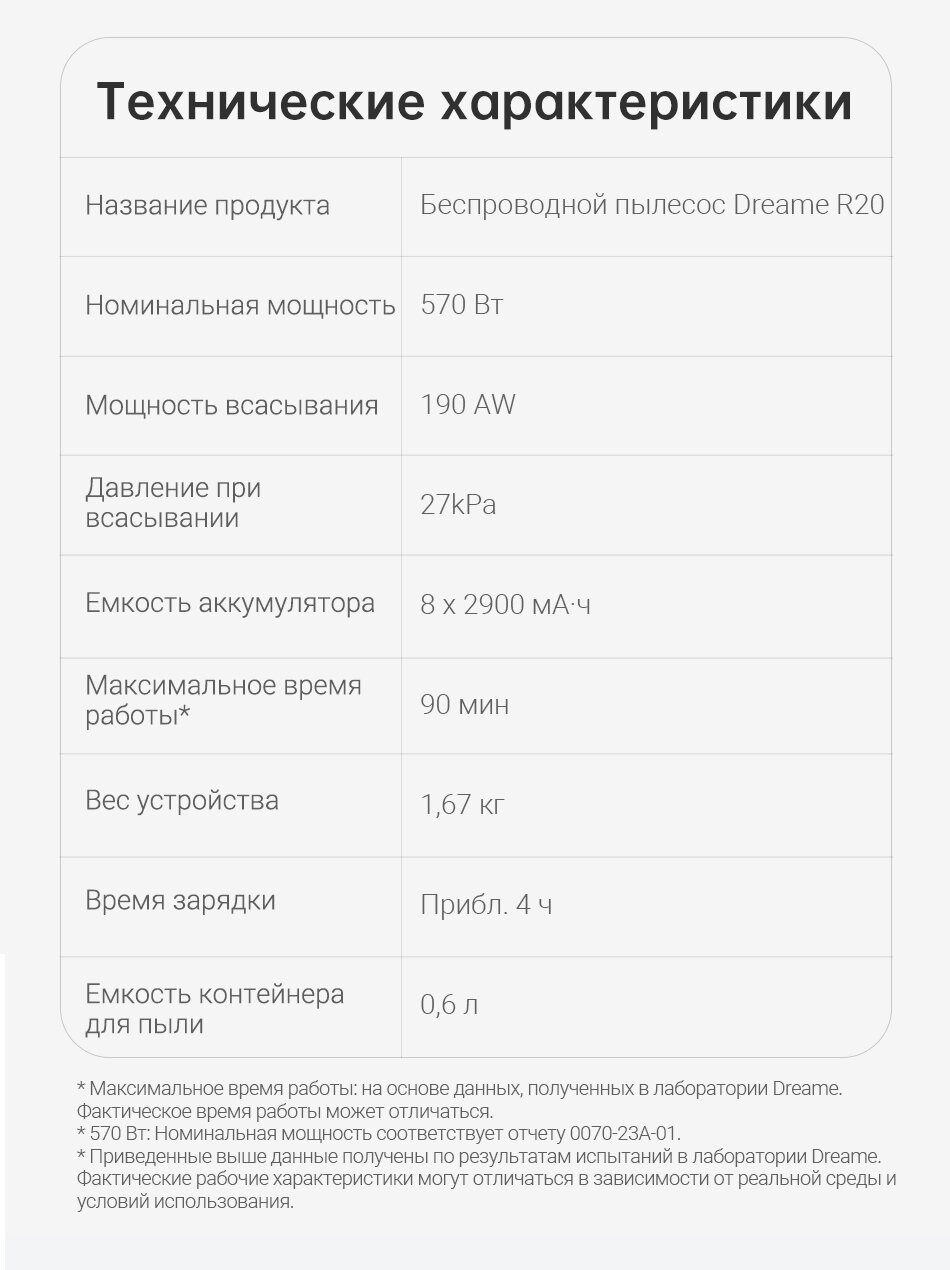 Пылесос вертикальный Dreame Cordless Vacuum Cleaner R20 Серый интересное: