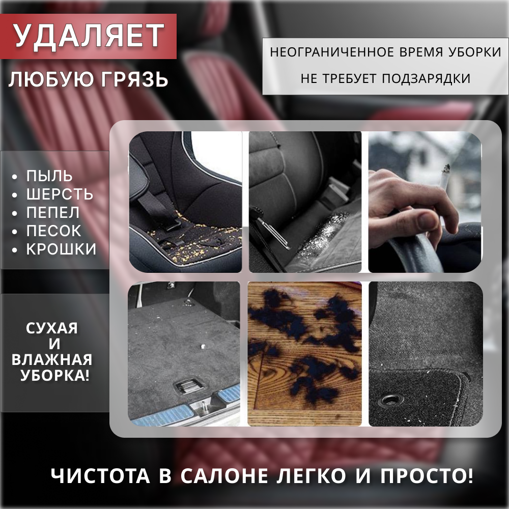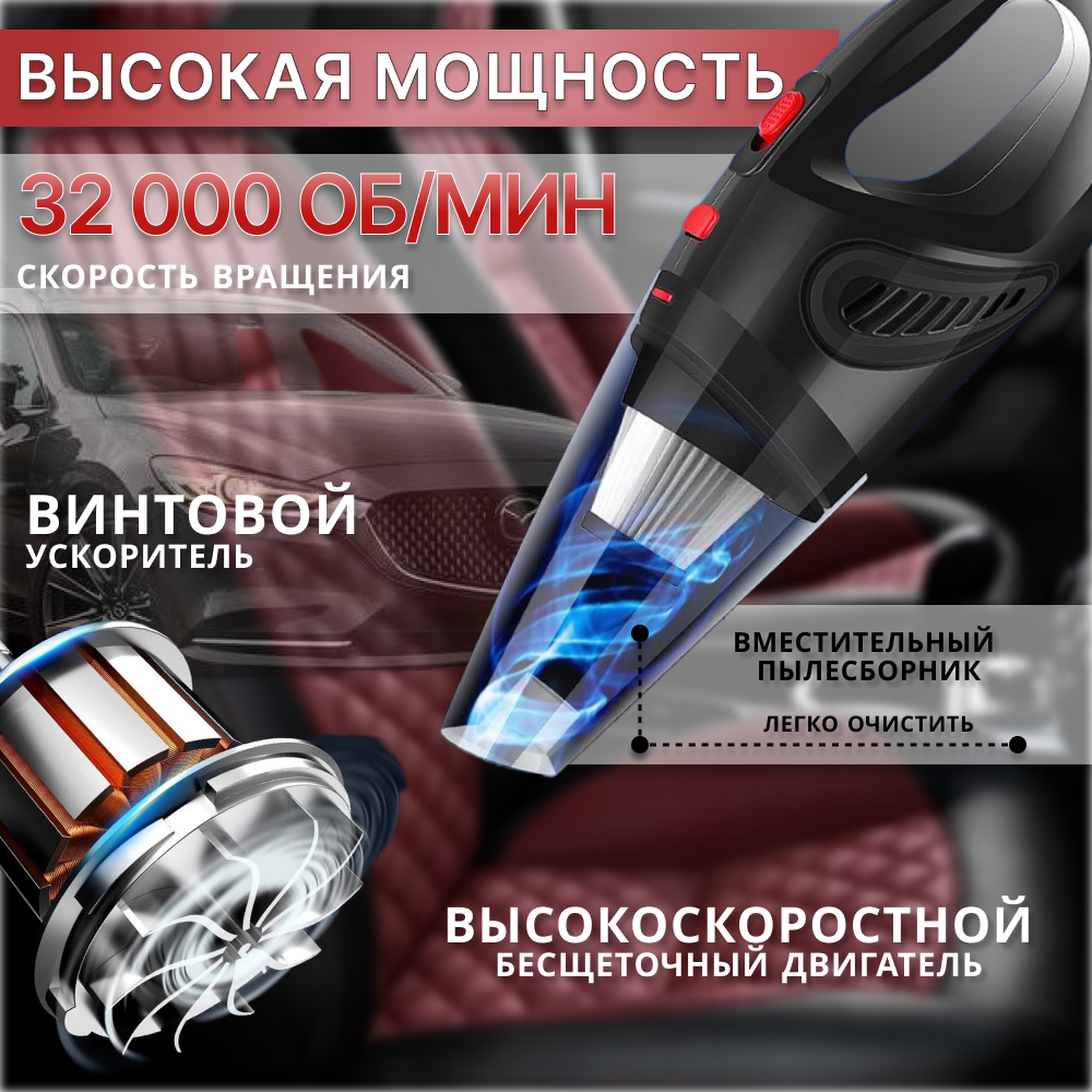 Автомобильный ручной пылесос Proliss PRO-111. Пылесос для салона автомобиля, 120 Вт, 5000 PA, 4 насадки. интересное: