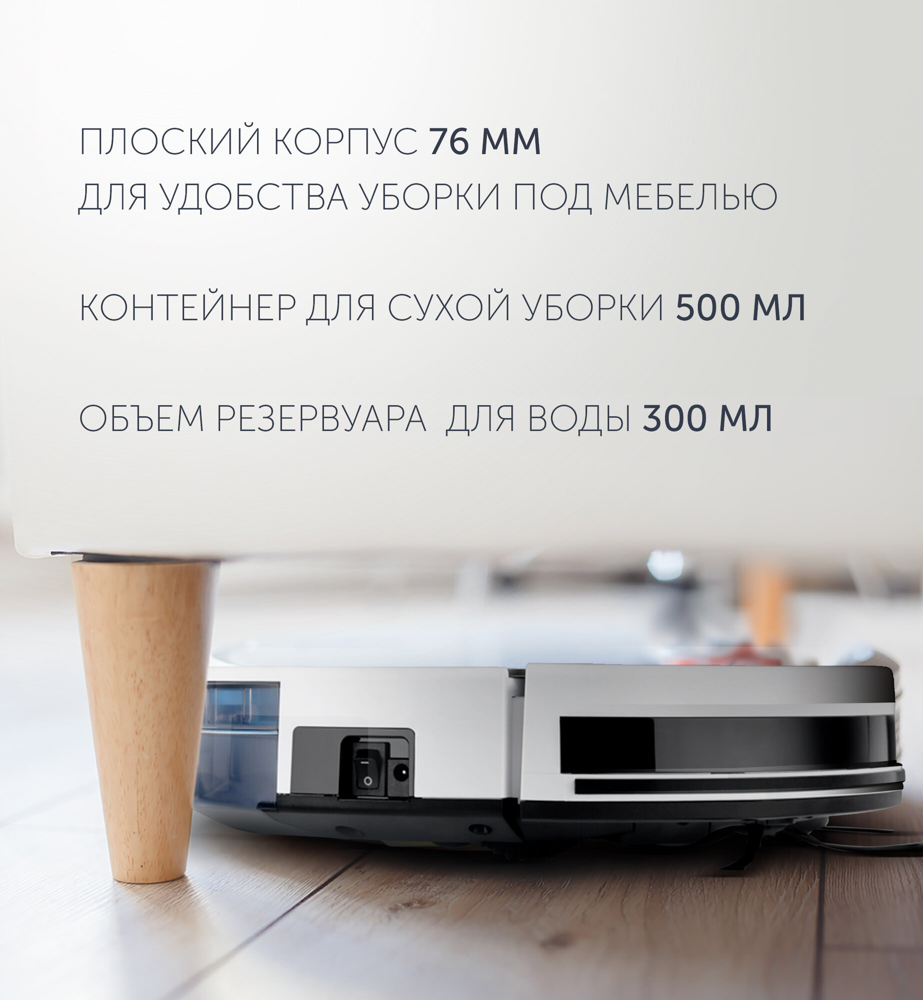 | Особенности конструкции | индикатор заполнения пылесборника / мусоросборник в базе / мягкий бампер / подсветка дисплея |