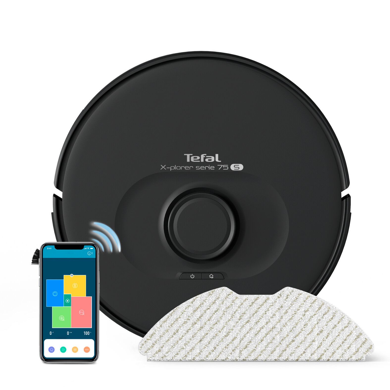 Купить Робот пылесос Tefal X-plorer Serie 75 S RG8575WH работает с Алисой, с сухой и влажной уборкой, управлением со смартфона, черный
