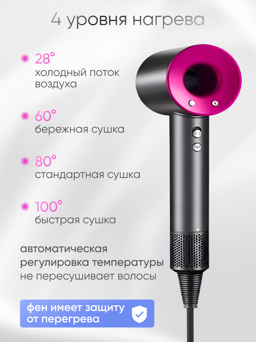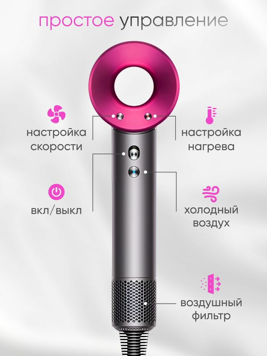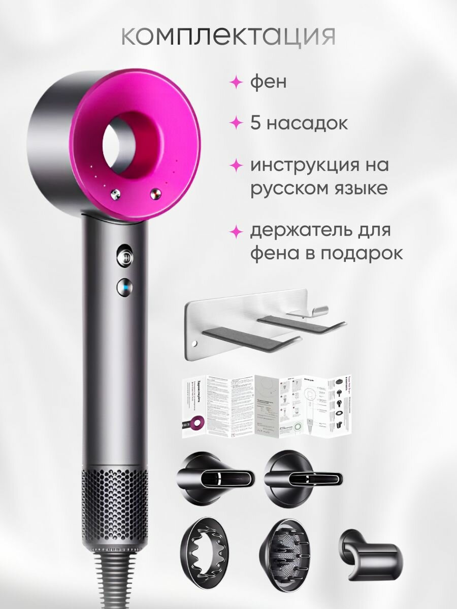 СохранитьФен для волос профессиональный с ионизацией с магнитными насадками 5штук/ мощный супер фен розовый/ евровилка/RU интересное: