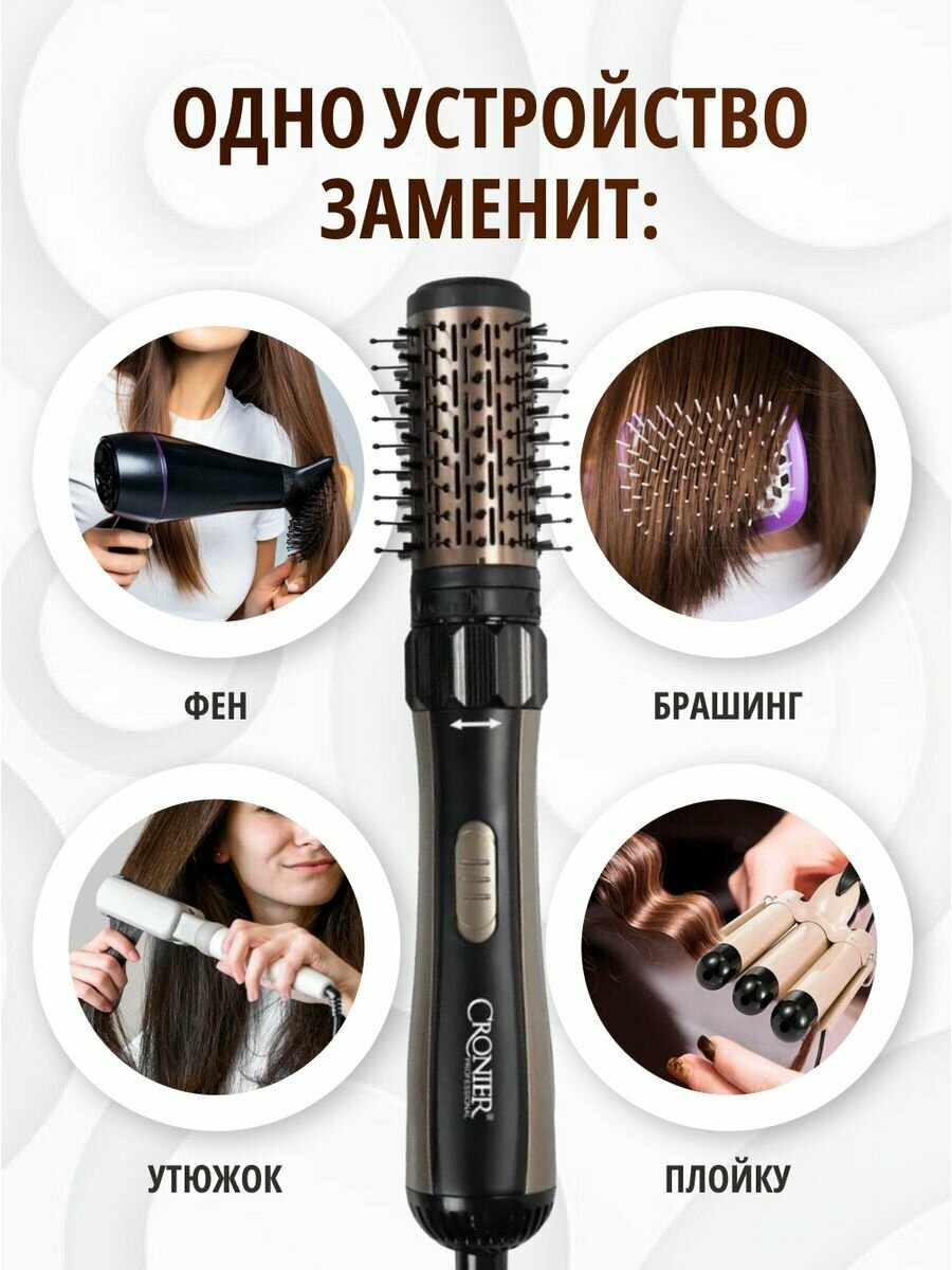 Фен-щетка для волос Cronier Professional CR-6877 (черный) интересное: