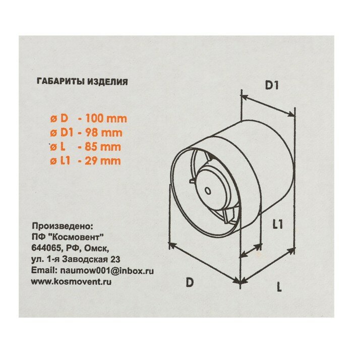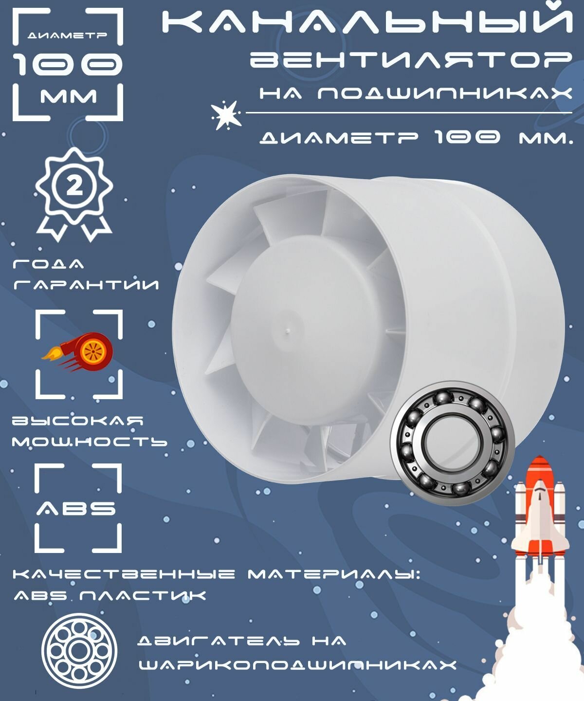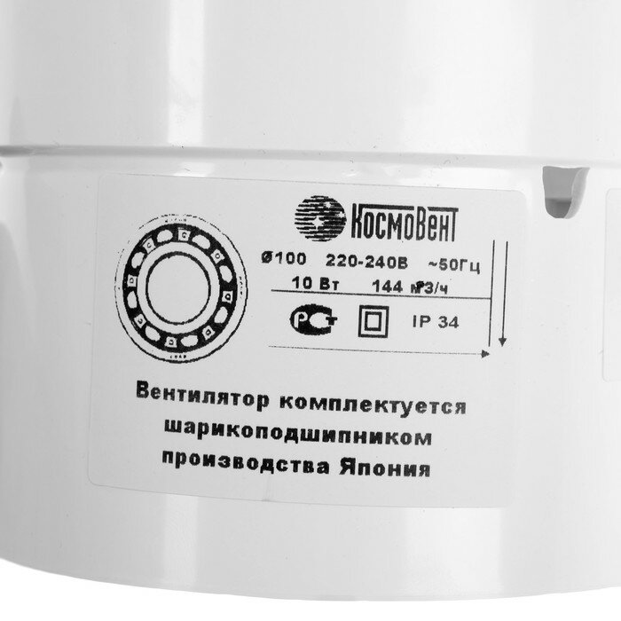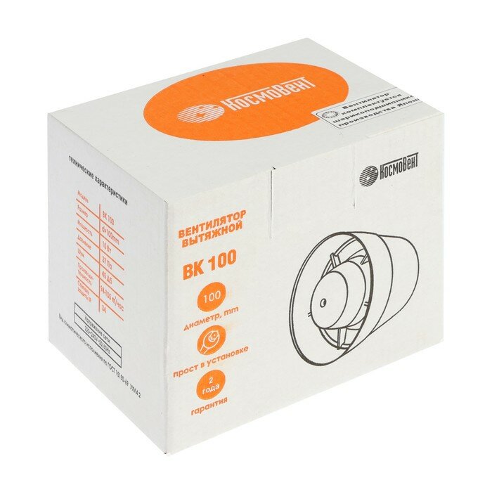 Вентилятор вытяжной "КосмоВент"ВК100ш, d=100 мм,10 Вт, 94-105 м³/ч, канальный, подшипник интересное: