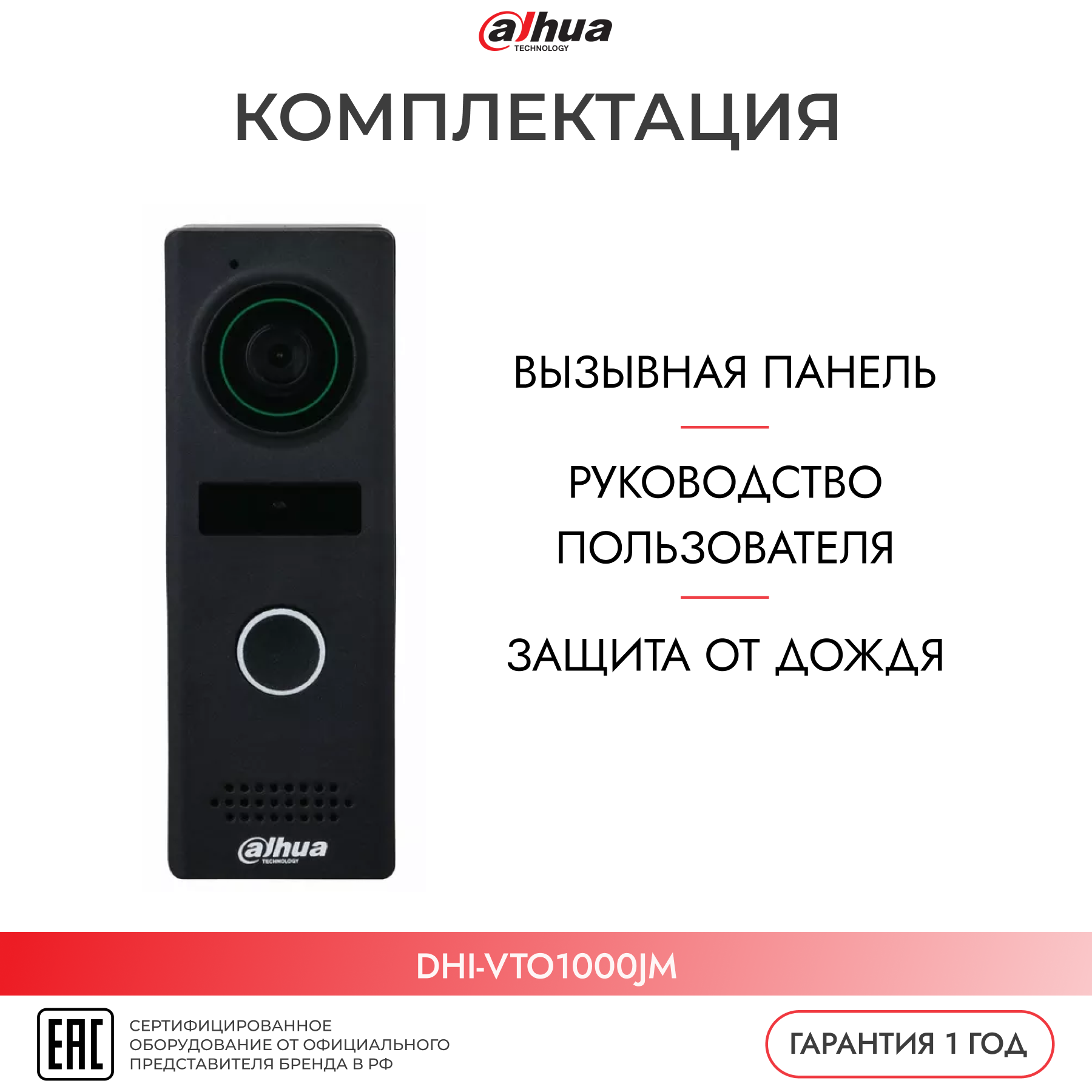 Видеопанель Dahua DHI-VTO1000JM, цветная, накладная, черный интересное: